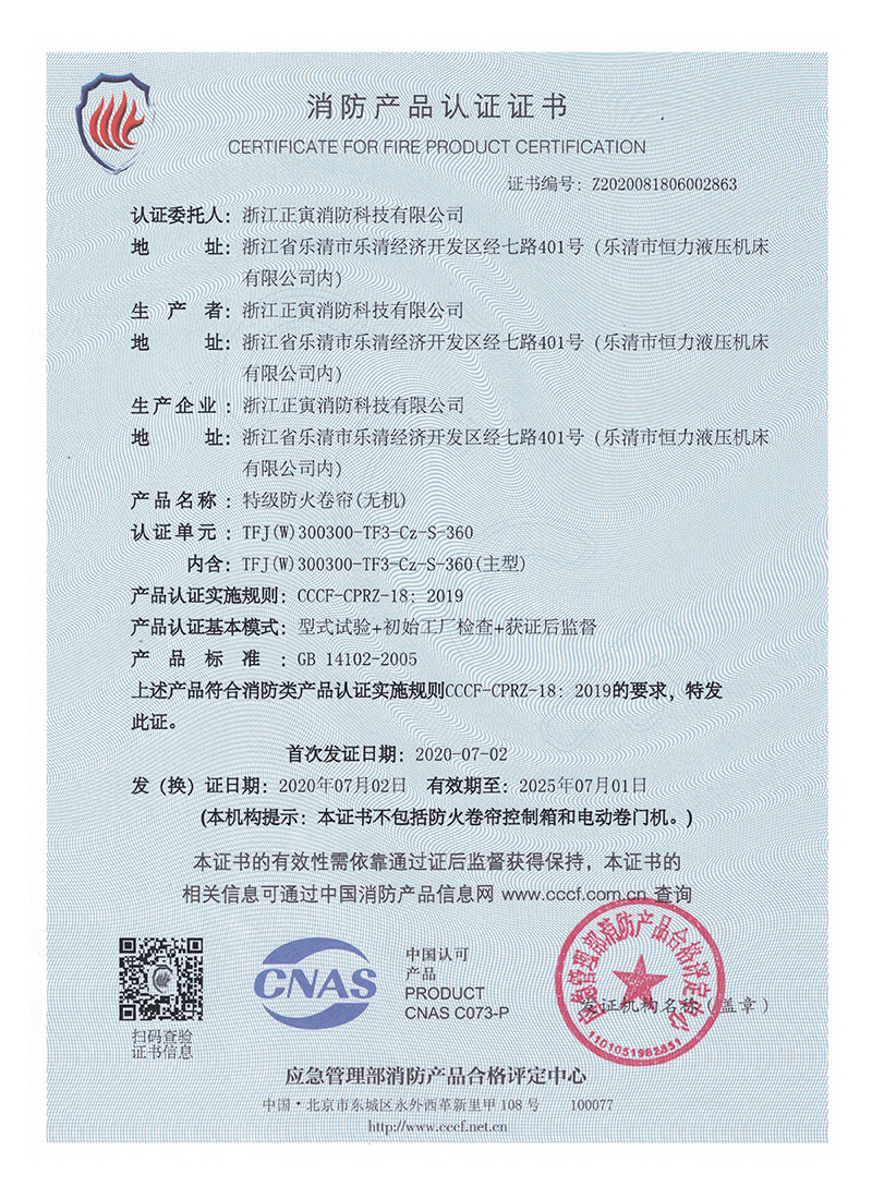 TFJ(W)-300300-TF3-Cz-S-360特级防火卷帘(无机)
