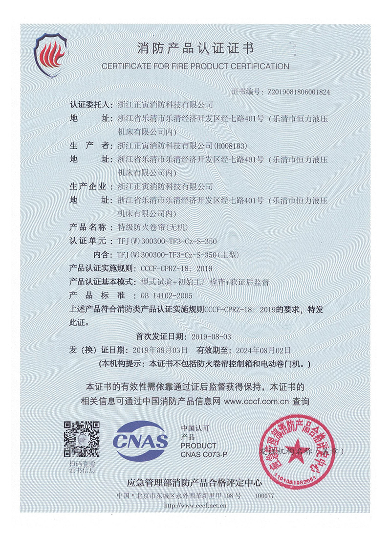 TFJ(W)-300300-TF3-Cz-S-350特级防火卷帘
