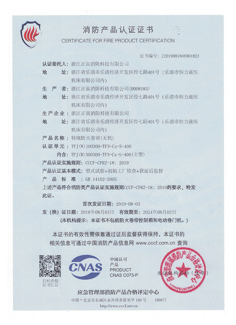 TFJ(W)-300300-TF3-Cz-S-400特级防火卷帘(无机)